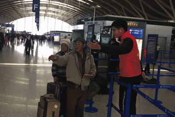 “来到上海南站当志愿者,看到了形形色色的旅客,才知道回一趟家有多不容易。”上海杉达学院大二学生孙阳告诉记者。每天早上8点志愿者“上班”后,就已经有一批旅客开始等候了,他们或坐或蹲,徘徊在售票机附近,饿了就泡一碗方便面吃。直到下午3点第一批志愿者回家时,有些旅客还没启程。“他们都不会用手机或者电脑购票,只能比别人来得更早,在火车站买票。有时候就算早来也没有用,只能苦苦等候。”孙阳解释说。