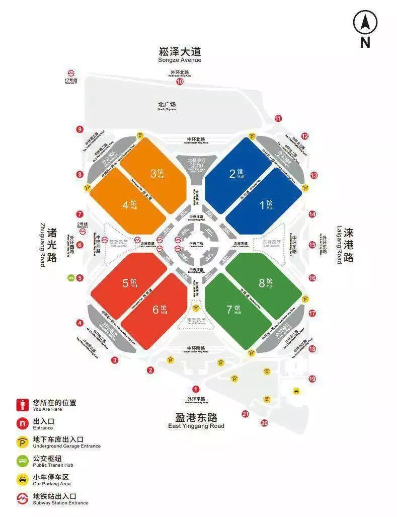 国家会展中心整个展馆建筑分为3层,包括13个小展厅以及3个大展厅,是目前世界上最大的建筑单体和会展综合体。场馆之前的标识信息,基本是2H或者6.2这样的数字加英文缩写的命名,不是世界通行的命名方式。此外,场馆与场馆之间的标识信息也不统一,虹馆、WH、1H的馆名让参观者不明就里。