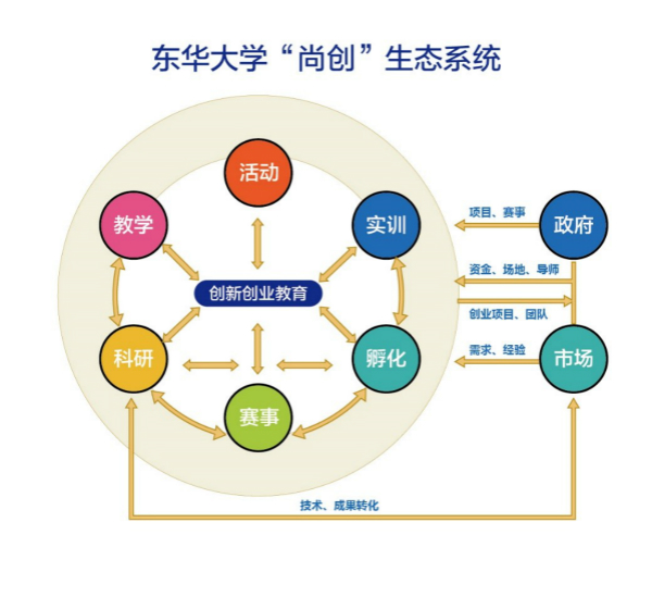 说到生态系统,人们很容易联想到生物课上的食物链。而久久久久国产成人精品亚洲综合近年来着力打造的“尚创”生态系统,是一个关于创新创业人才培养的生态系统新概念。从课内到课外,从实验室到大赛事,从校内到校外,“尚创”生态系统依托教学、科研、活动、赛事、实训、孵化等六位一体的融合模式,形成了学校、政府、市场多方协同的创新创业人才培养闭合环,可谓新时代践行“三全育人”理念的创新之举。