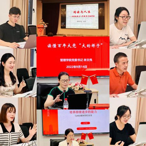 十年风雨兼程、十年勇毅前行。党的二十大报告以中国式现代化全面推进中华民族伟大复兴作出全面部署,是新时代新征程的政治宣言和行动纲领。管理学院党委以学习贯彻党的二十大精神为主线,传承弘扬伟大建党精神为重点,以“铸魂”为本、“活学”为先、“做实”为要,聚焦课程育人、文化育人、实践育人,深入开展好“弘扬伟大建党精神,奋进新征程,迎接贯彻党的二十大”主题活动,切实把学习和践行党的二十大精神转化为干事创业的根本动力,引领推动教育高质量发展,助力奋进东华建设。